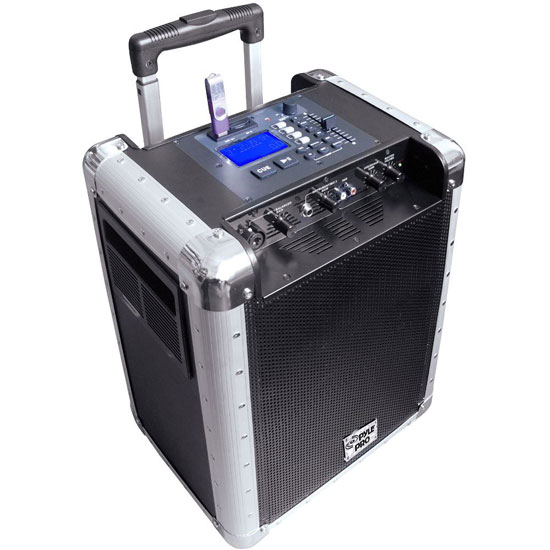 The PCMX265B is a portable all-in-one DJ mixer, PA system, and digital music player on wheels. It’s perfect for traveling performers because it’s easily transportable and conveniently plugs into your wall outlet. Get the audio power and performance you need with this versatile unit.