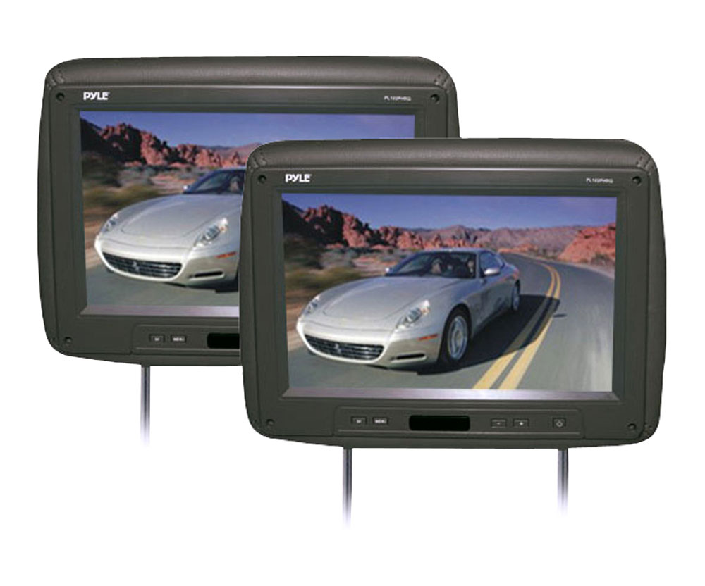 On long trips, it's important to keep the backseat entertained and the driver comfortable. That's where this pair of black adjustable headrests with built in 10.2' LCD monitors come in. The picture on the screen is bright, crisp and accurate, thanks to the 800x480 resolution, 300:1 contrast ratio, 25ms response time, and 16:9 display ratio. These take two standard RCA inputs, so you can hook up your DVD player, video iPod, or video game console with ease. A full function remote control provides complete wireless access to your monitor's settings. The kids will enjoy themselves in the backseat and you'll be comfortable and safe in the front knowing a headrest will protect you. These monitors are also compatible with IR wireless headphones, so you can enjoy peace of quiet while the backseat has a blast. Best of all, these headrests are easy to install, and fit in many car and SUV models.