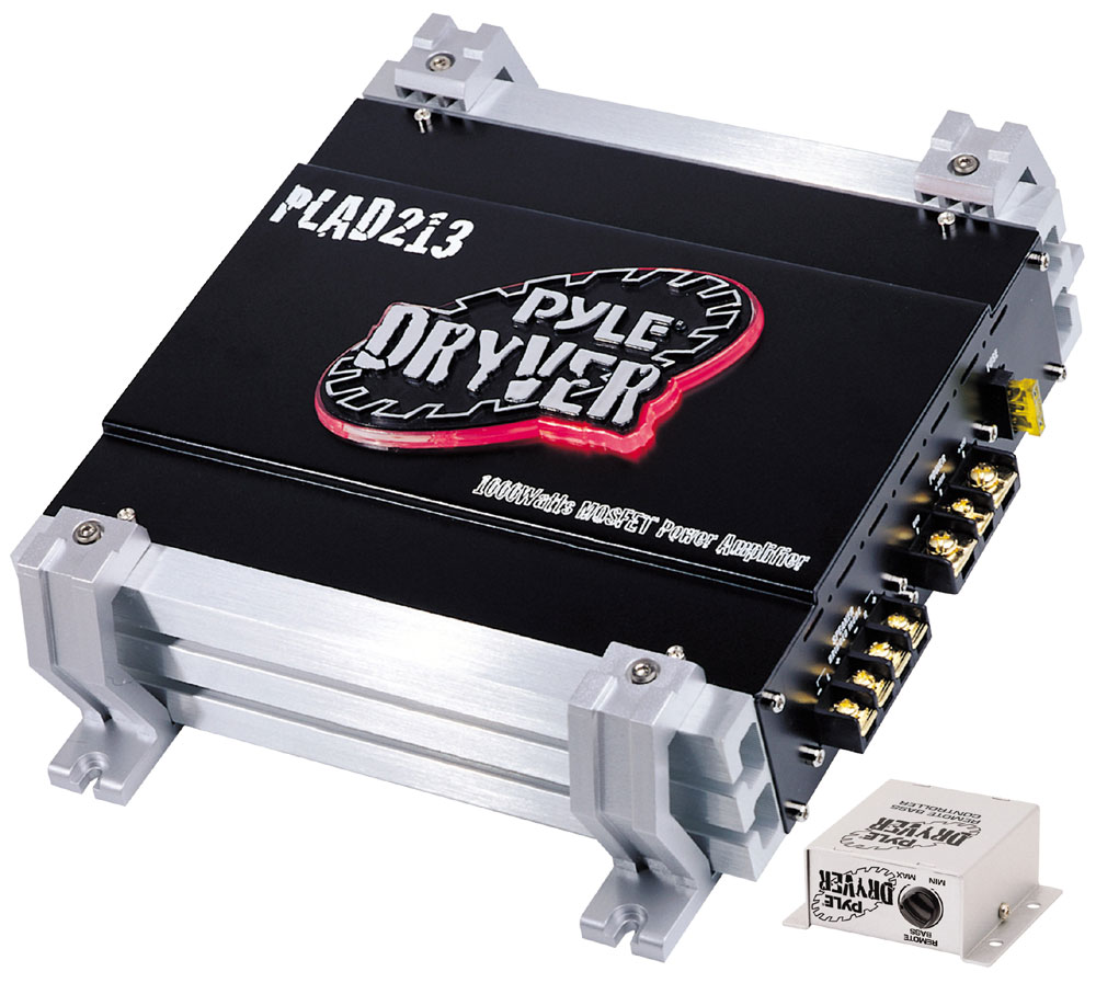 Pyle is proud to present the Pyle Dryver series, a set of low-cost, high-quality amplifiers that are attractive and compact. You'll be blasting your tunes and rocking the block with these amps. The PLAD213 is a two-channel, 1000-watt power amplifier. It's equipped with everything you've come to expect from quality car amplifiers - variable bass boost, gain control, and electronic crossover network. The RCA ports are gold-plated for eliminating signal loss. A wired remote lets you control the bass level from the comfort of your vehicle. A low-pass and high-pass filter allows you to tweak your signal to your liking and eliminate unwanted low- and high-end noise. This model doesn't just sound great - it looks great, too, thanks to the red light up chassis.
