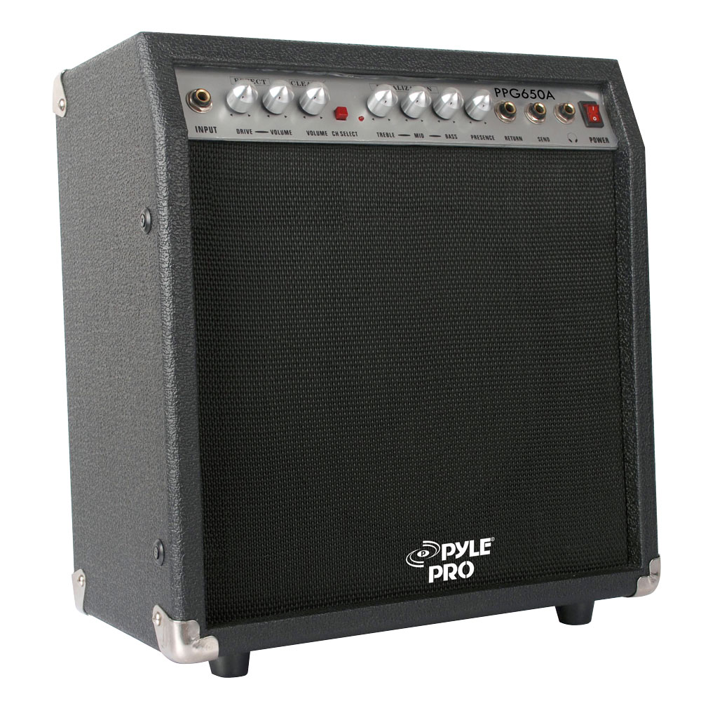 The Pyle 60 Watt Portable Guitar Amplifier - Original Tone/Overdrive Select - Three Band EQ - Treble,Middle & Bass Volume and Presence Control - Input & Output 1/4'' Jack - Headphone Output - Speakers : 10" X 1 - Speaker Impedance: 8 Ω - Weight :10KG - Power Supply 110V - Size :14.96''W x 7.08''D x 15.35''H.