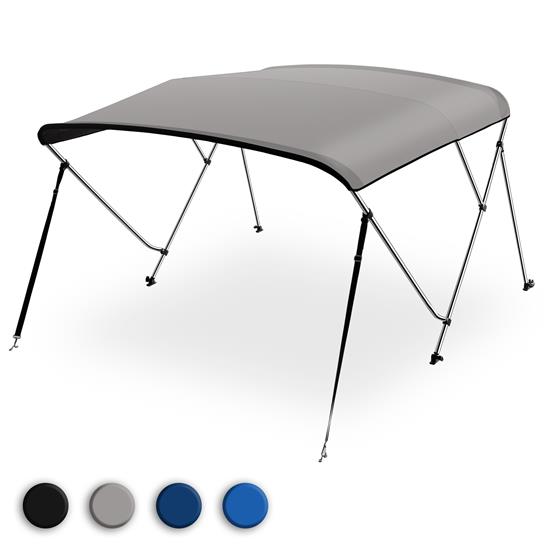 3 Bow Bimini Top - 2 Straps and 2 Rear Support Poles with Marine-Grade 600D Polyester Canvas (Gray)